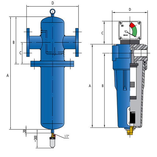 มีออโตเมติกเดรนแยกภายนอกตัวฟิลเตอร์พร้อม Ball Valve