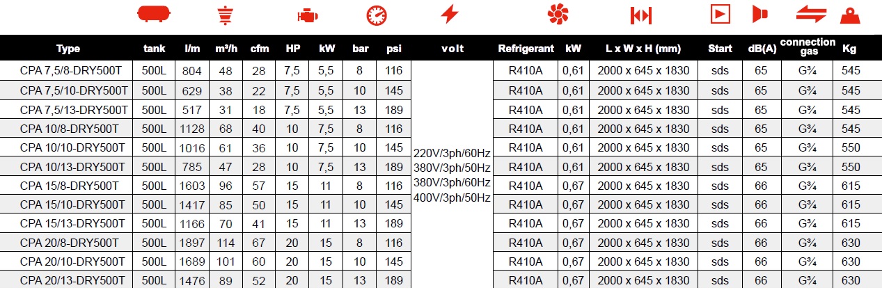 CPA/CPB DRY Series 7.5 - 40 HP 5.5 - 30 kW Low noise levels, Easy and fast maintenance, Energy saving controller, Built to last and All in one solution.